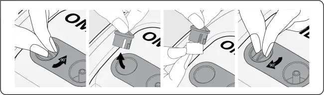 4. Placez le bouchon contenant le filtre à air dans le compresseur et tournez-le d’environ 90 degrés dans le sens des aiguilles d’une montre pour le resserrer.