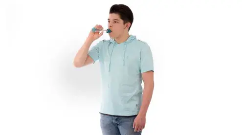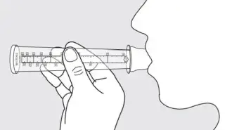 Blow out as hard and as fast as possible. The force of the air coming out of your lungs will cause the yellow indicator to move along the numbered scale.