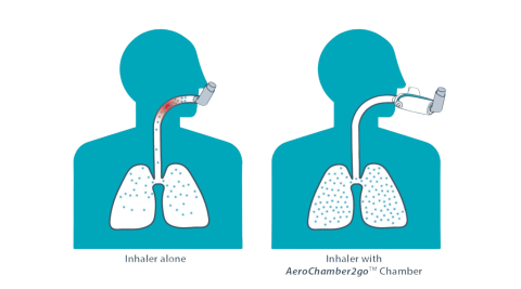 1) Testing of a prototype: Suggett et al. Impact of inhalation delay on medication delivery from a salbutamol HFA pressurized metered dose inhaler used with and without a new prototype portable valved holding chamber. European Respiratory Journal 2019 54:PA4229. 2) Data on file. 3) Dorinsky P et al. Relative Bioavailability of Budesonide/Glycopyrrolate/Formoterol Fumarate Metered Dose Inhaler Administered With and Without a Spacer: Results of a Phase I, Randomized, Crossover Trial in Healthy Adults. Clin Ther. 42 (2020), 634-648. 4) Suggett J et al. The impact of inhalation delay on lung drug delivery: using functional respiratory imaging (FRI) to compare metered dose inhaler (MDI) and MDI/Valved Holding Chamber (VHC) Systems. Am J Respir Crit Care Med 2020;201:A5889.