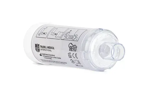 Pour usage conjoint avec un aérosol-doseur chez les patients ayant subi une trachéostomie. Ce dispositif est conçu pour s’ajuster en glissant sur le connecteur de 15 mm du tube de trachéostomie.