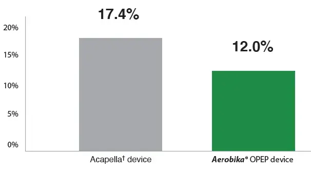 Patients using the AEROBIKA* OPEP device had a 31% reduction in COPD/chronic bronchitis-related readmission within 30 days of the index hospitalization
