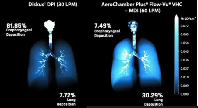 Greater Lung Deposition with AEROCHAMBER* VHC + MDI