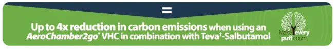 In combination, the selection of the Teva†- salbutamol MDI delivered using the AeroChamber2go* Spacer could potentially reduce the number of actuations required for patient relief of symptoms, which could help contribute to an up to 4.6x reduction in the carbon emissions compared to using a Ventolin† MDI product alone.