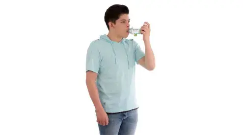 Remove caps from the inhaler and mouthpiece chamber. Shake the inhaler immediately before use as per the instructions supplied with it.