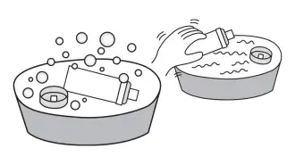 Soak the two parts in a 1:10 bleach to water solution for 30 minutes. Rinse parts in clean water. Note: You may substitute an enzyme solvent or VitalOxide† for the bleach solution. Follow the disinfectant instructions for use.