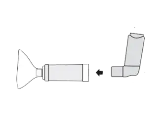Insert the inhaler into the backpiece of the chamber. Put mouthpiece into mouth and ensure an effective seal.