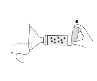 The patient should inhale slowly and deeply through the mouth until a full breath has been taken followed by a 5-10 second breath hold, if possible. Alternatively, the patient can keep their mouth tight on the mouthpiece and breathe slowly 2-3 times through the chamber after the inhaler is pressed.