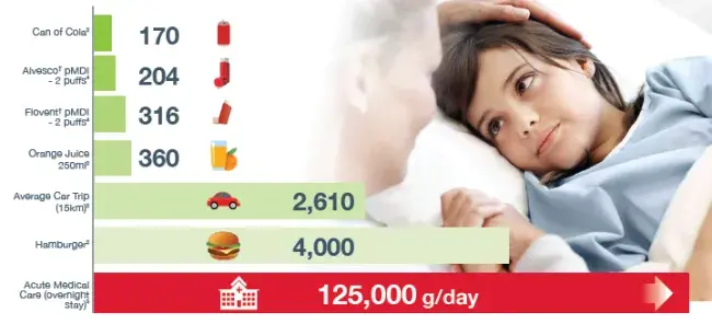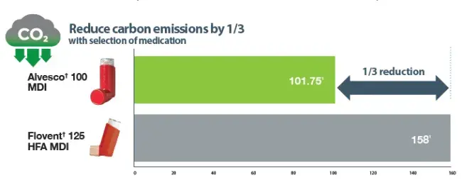 More efficient delivery of inhaler medication leads to less use of medication and therefore less carbon footprint. See the results below: